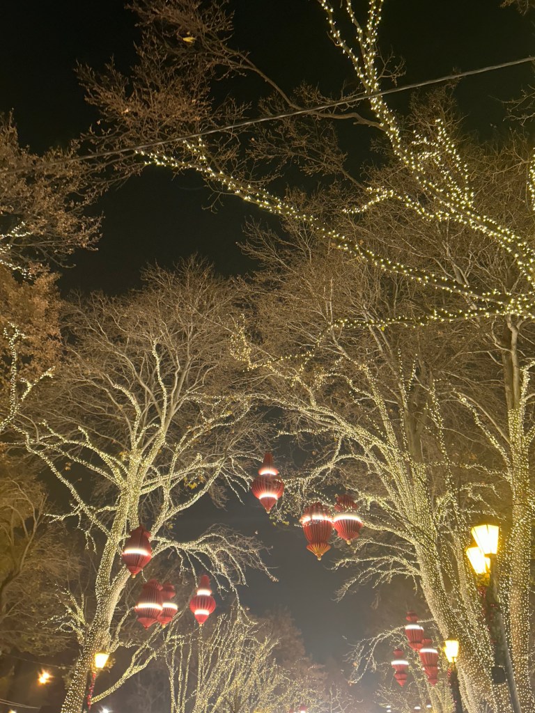 The streets are busy with holiday shopping and festive music, all beneath canopies of Christmas lights. The trees and buildings are decked in wreaths, lights, and ornaments, and the little grocery stores are filled with all the holiday treats, from Christmas Cookies to Sujukh, an Armenian candy made of walnuts coated in different flavors of molasses.